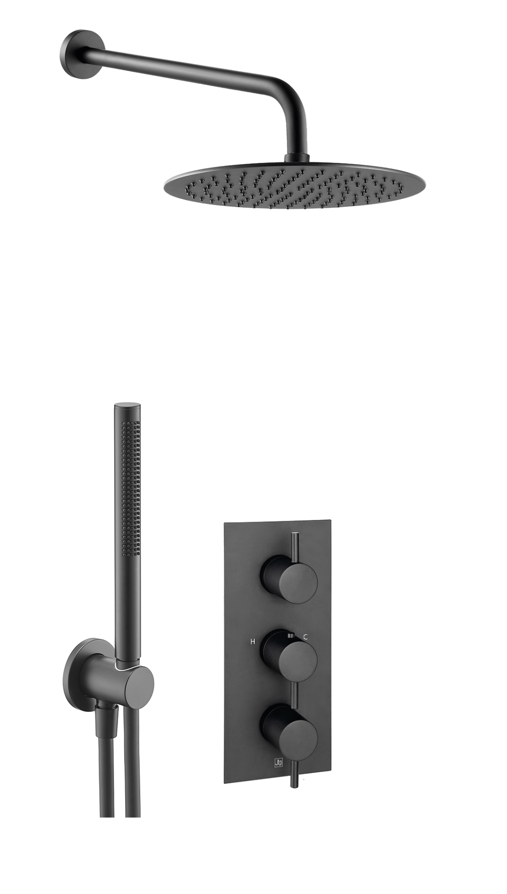 28OUTLET/MB Round water outlet with holder, plastic hose, and slim hand shower